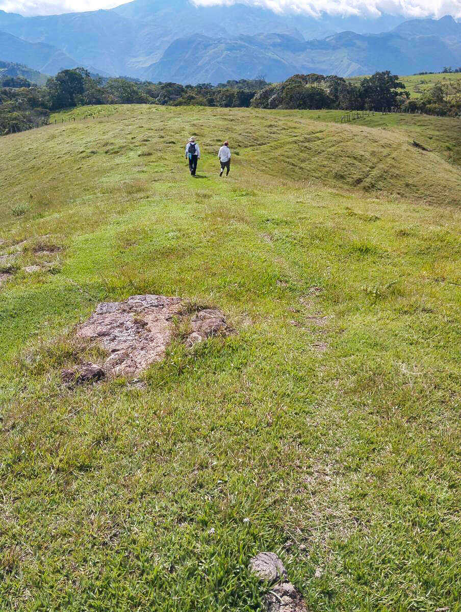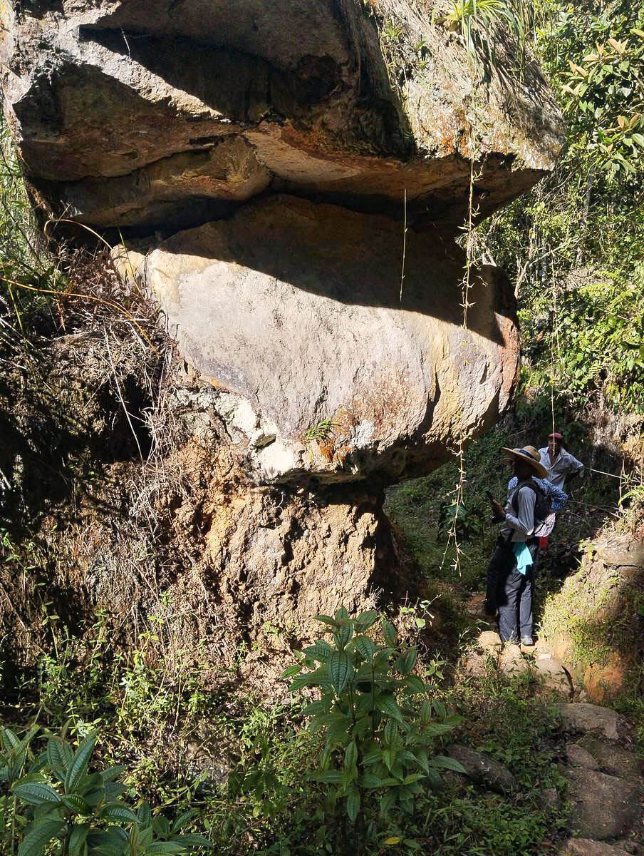 La ruta comienza en el parque de Guadalupe, dirigiéndose hacia el sur hasta encontrar el camino que lleva a Las Gachas. Antes de llegar al balneario, tomamos un desvío a la izquierda por los potreros para llegar a la cascada El Chorro. Luego, regresamos a los potreros y continuamos hacia la derecha para encontrar el camino ancestral conocido como la Ruta de la Sal a Zipaquirá, por donde pasó Simón Bolívar. En este lugar se encuentra la Piedra del Diablo y una pequeña cueva llena de mitos y leyendas. Continuamos el recorrido pasando por la finca de Luis Fernando Díaz, y al salir, encontramos nuevamente el sendero de Las Gachas, donde se puede encargar el almuerzo. Más adelante, llegamos al balneario Las Gachas y seguimos el sendero hasta regresar al parque de Guadalupe.
