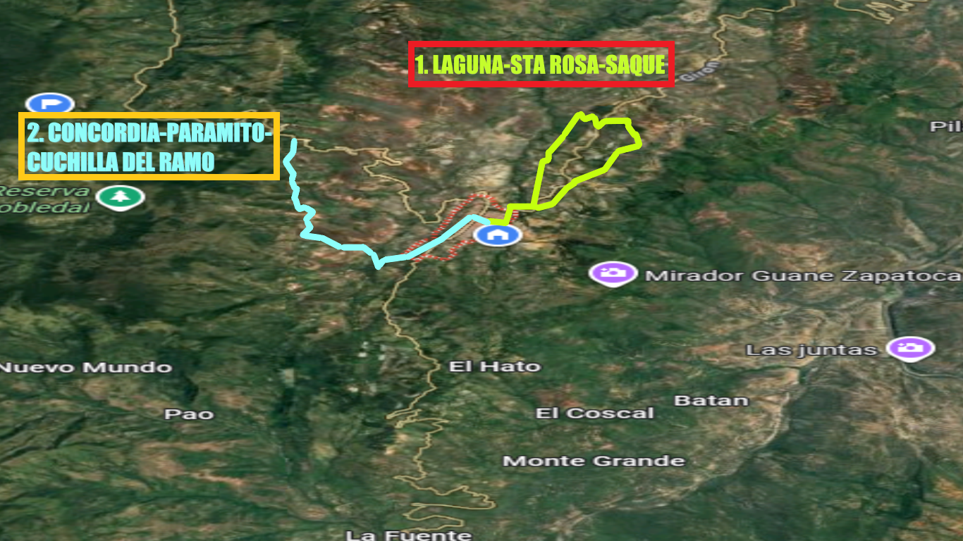 Recorrido: Parque Principal, Puente de las Lavanderas, quebrada Zapatoca, ascenso al Paramito, reservas forestales Mama Bertha y Montaña Mágica, Cuchilla del Ramo.