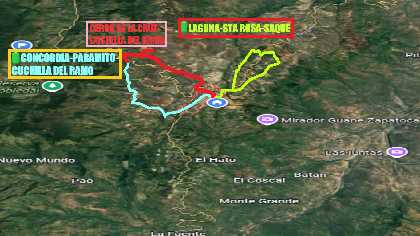 El recorrido inicia en la Cuchilla del Ramo con una visita al Cerro de la Cruz, un punto emblemático que ofrece amplias vistas panorámicas y un valor simbólico importante para la región. Desde allí comienza un descenso progresivo hacia la quebrada del Guayabo, siguiendo el histórico Camino de Lengerke.