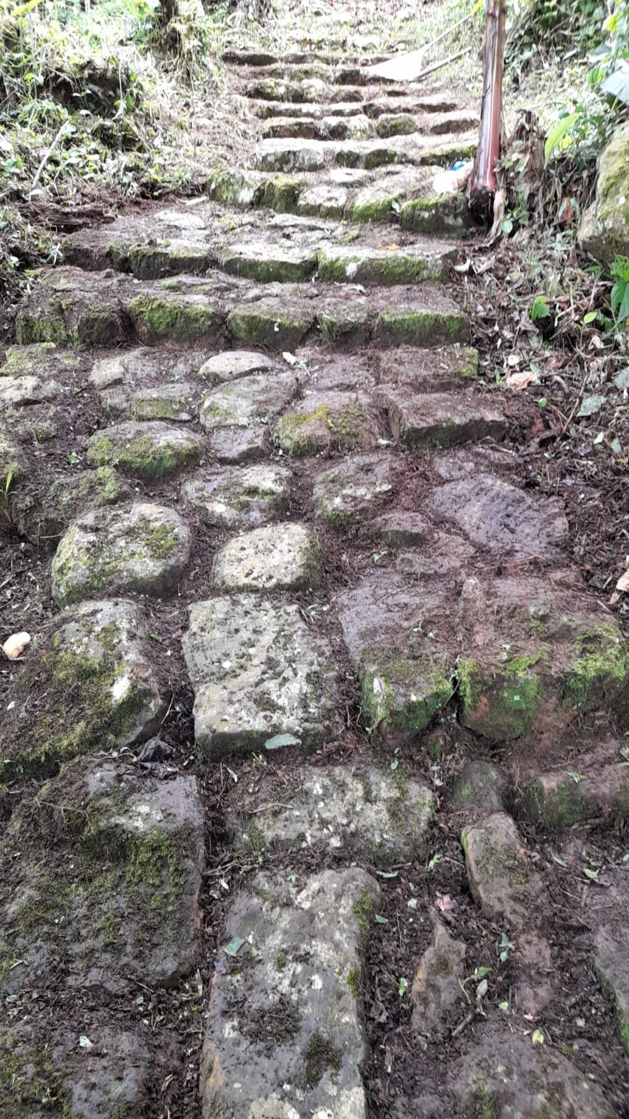 Desde allí se avanza al Tejar de Las Puentes para luego llegar a la zona del aeropuerto, donde se toma el histórico Camino de Lengerke, un tramo patrimonial construido en piedra que conserva el legado caminero del siglo XIX. Este camino guía la travesía hacia la vereda Santa María, un sector de relieve ondulado y amplias panorámicas.
